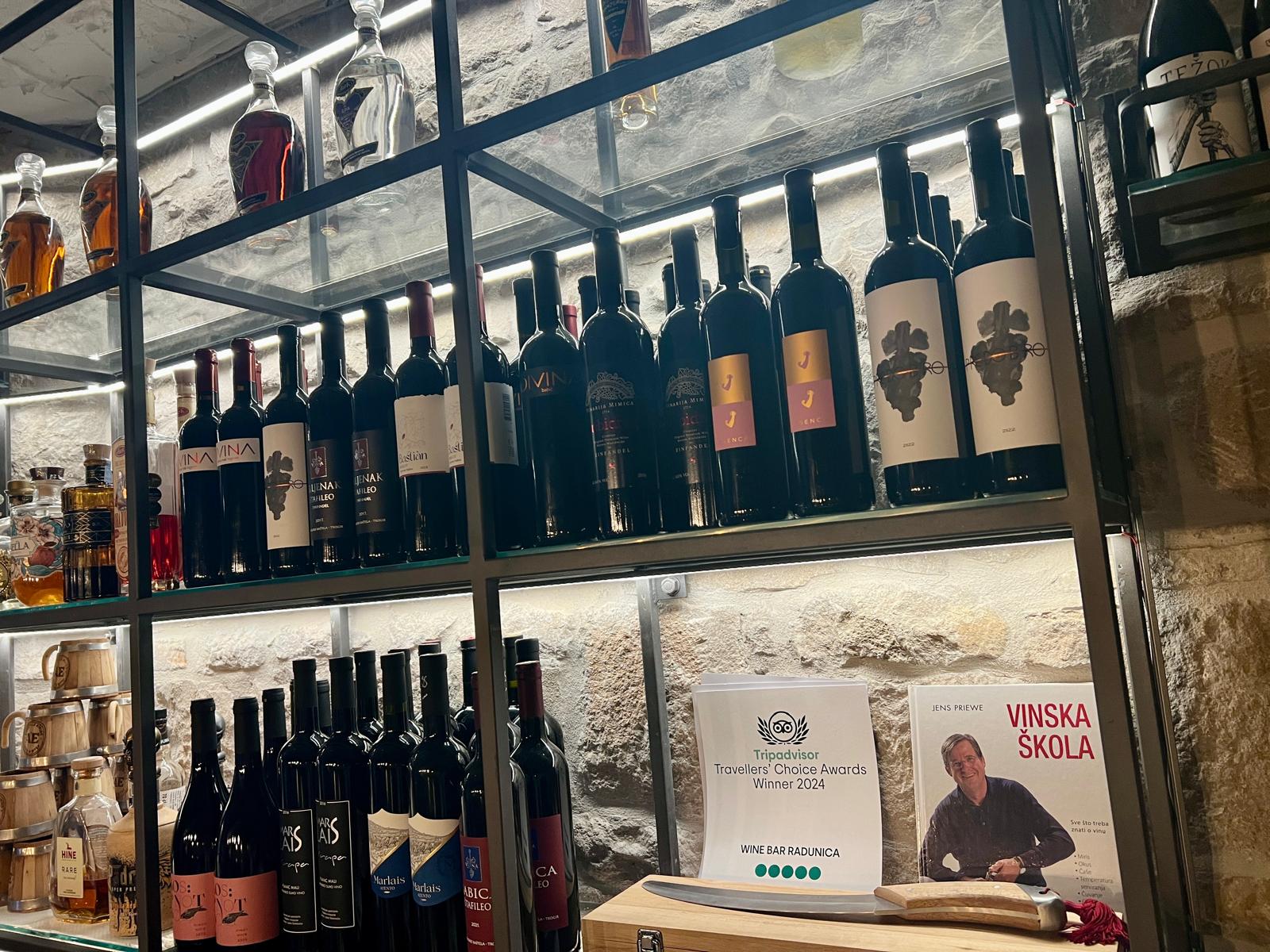 Uz ovakav meni, prava čarolija dolazi kada se spoji s idealnim vinom. Gazda restorana je pravi vinski znalac, i ako mu se obratite s osmijehom će vam preporučiti savršeno vino koje će upotpuniti vaše gastronomsko iskustvo.